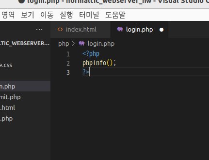 미리 깔아놨던 visual code에서 login.php를 이용해서 화면이 잘 뜨는지 확인해보자