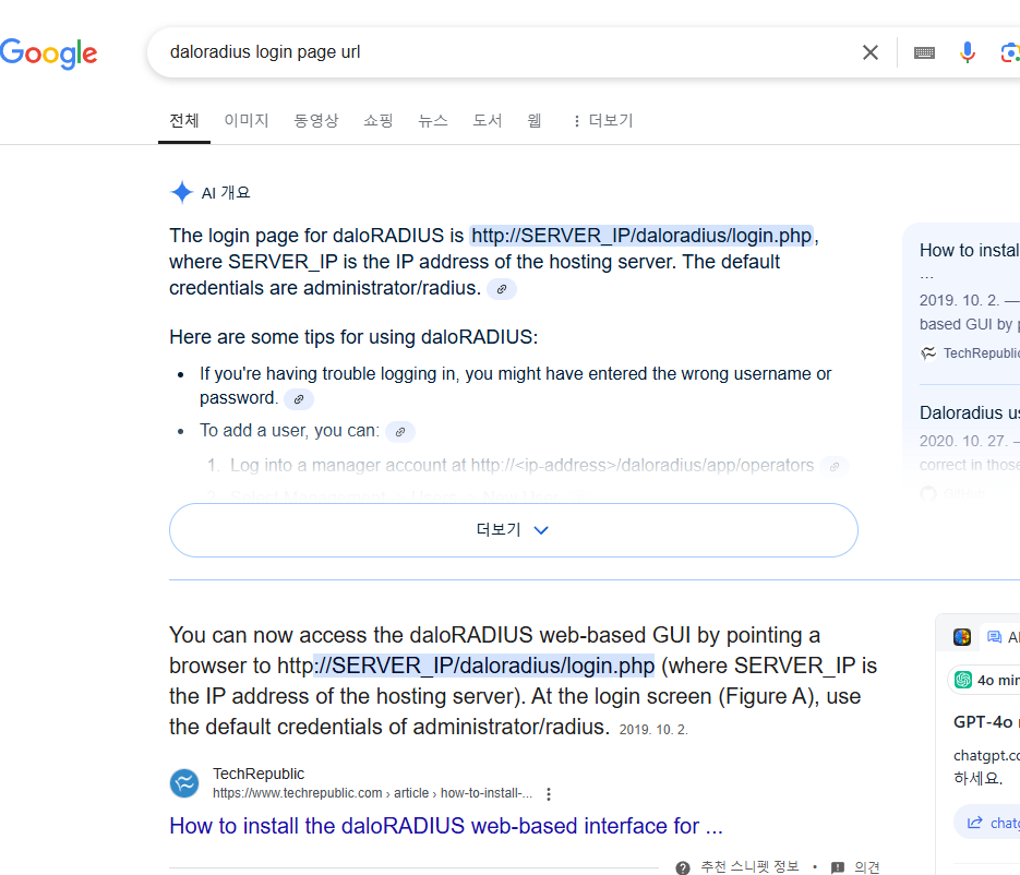 daloradius는 구글에서 default 계정정보를 획득할 수 있다.