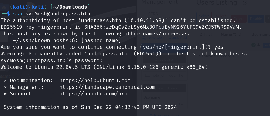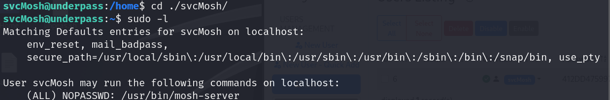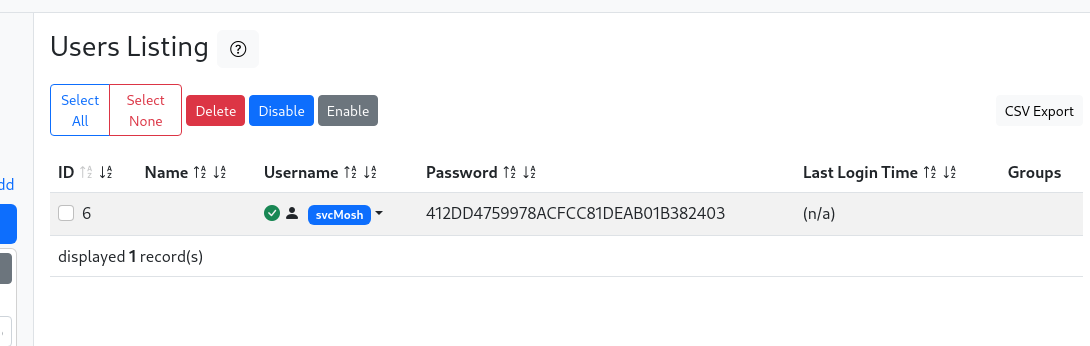 돌아댕기다가 Management > List Users 메뉴에서 svcMosh라는 유저를 발견했다.