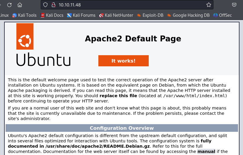 웹으로 접근해보니 apache2의 Default page 가 나왔다.