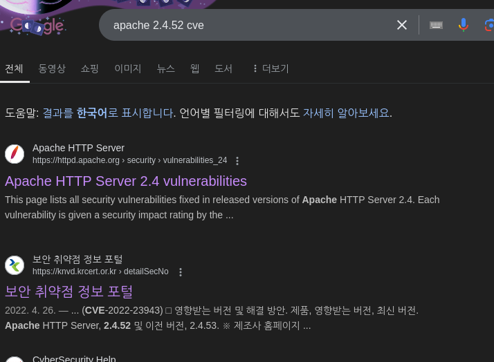 apache2 2.4.52 cve를 검색해보았으나 마땅한 게 없었다.