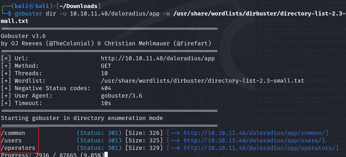 daloradius 아래로 fuzz를 돌려보자.