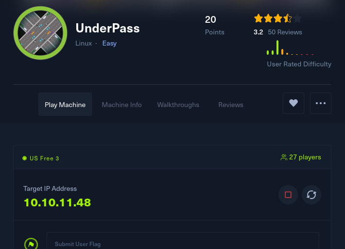 이번에 풀어볼 문제는 Linux 기반에 Easy 수준인 UnderPass이다.