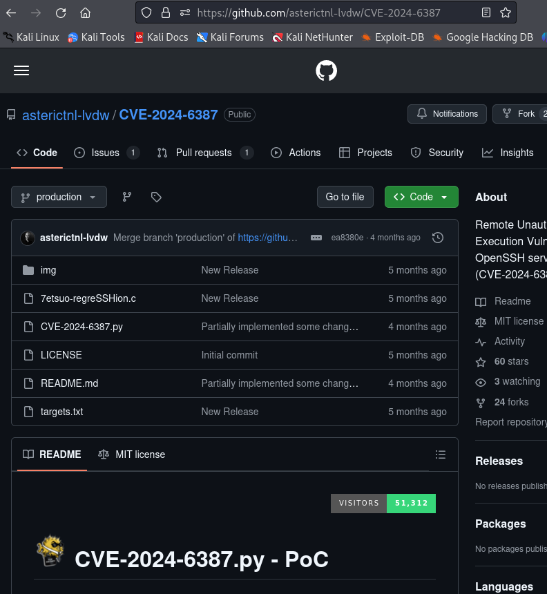 GitHub - asterictnl-lvdw/CVE-2024-6387: Remote Unauthenticated Code Execution Vulnerability in OpenSSH server (CVE-2024-6387)