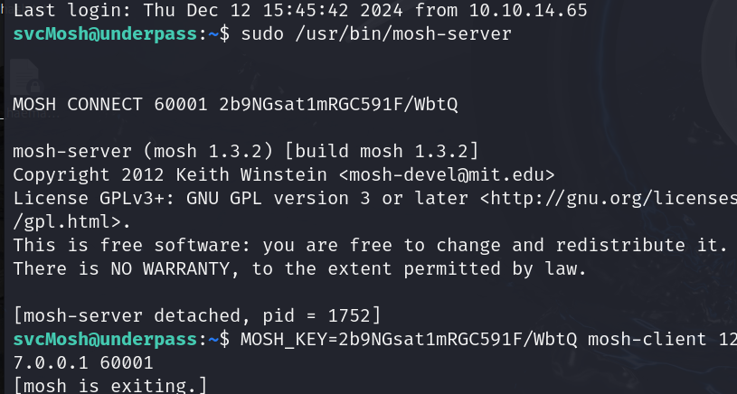 sudo -l 명령어를 통해 root 권한으로 실행시킬 수 있는 바이너리가 있는지 검색해보았는데 mosh-server라는 게 하나 뜬다. 음...? 이걸 써야될 거 같긴한데 어떻게 악용할지 아무리 검색해도 나오질 않았다...스트레스!!