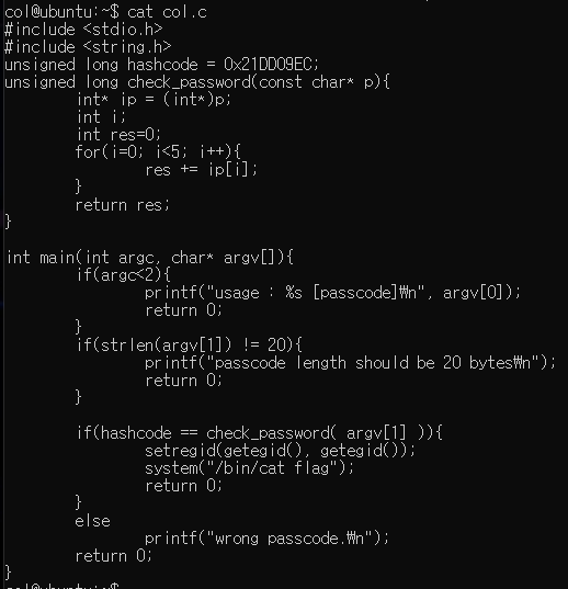 passcode는 20 bytes가 되도록 넣어야한다. (입력받는 p가 char이므로 20글자를 넣어야함)