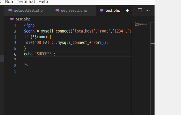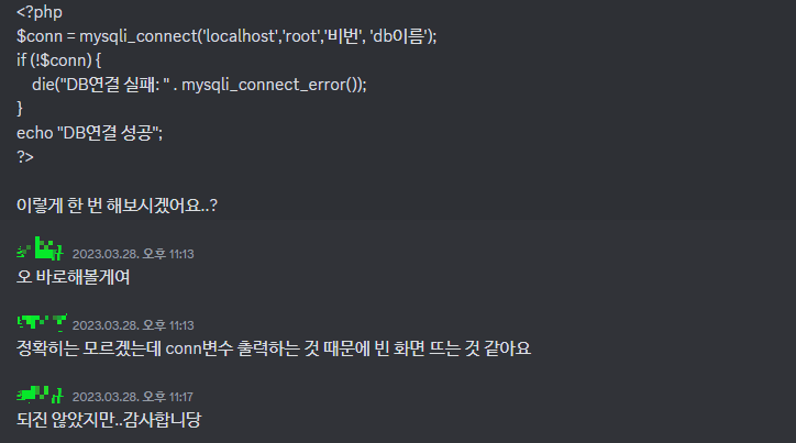 $conn 연결을 시도하고, 만약 변수값이 없다면 DB FAIL이라는 문자열을 뱉도록 설정되어있다.