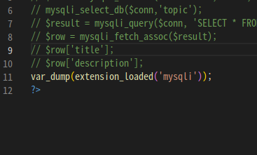 열심히 구글링해본 결과 저 var_dump 구문으로 mysqli가 정상적으로 설치되어있는지를 테스트해보는 게 좋을 것 같아 코드에 넣어봤더니 역시나 false가 뜸...