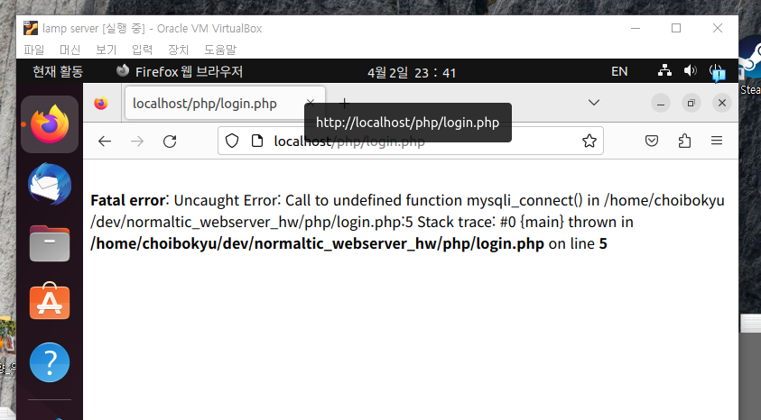 apache/php/mysql 을 따로따로 설치하는 과정에서 호환에 문제가 생겼거나