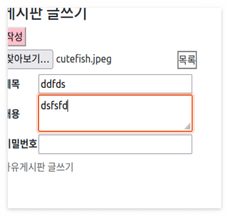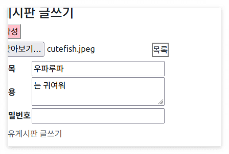 글 작성을 누른 후 cutefish.jpeg라고 저장한 우파루파 이미지를 첨부해줍니다