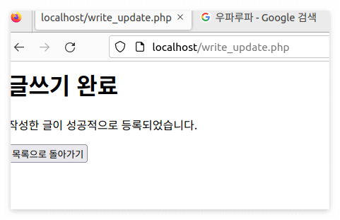 header함수를 write_update.php 상단에 추가해버려서 그랬던 것 같습니다