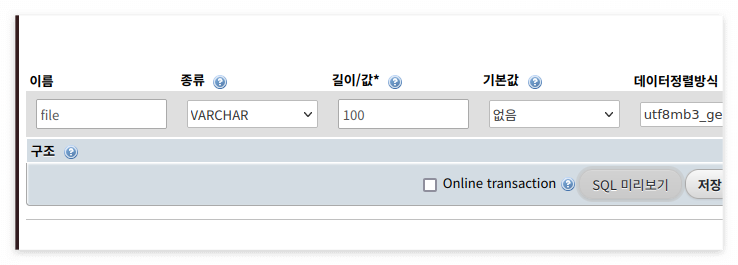 우선, 데이터베이스에 File 컬럼을 추가해줍니다.