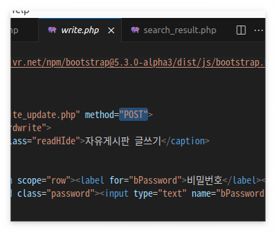 write.php 부분의 form 태그 부분입니다. 이 다음에 하단처럼 enctype 속성을 추가해줍니다.
