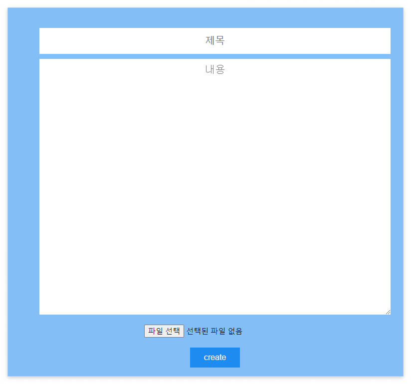 제목과 내용 그리고 파일을 첨부할 수 있는 칸이 구현되어 있습니다.