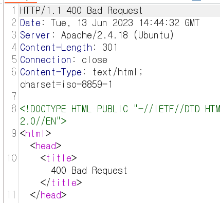 당연히 400에러가 뜨면서 아무 효력도 없을 겁니다. 하지만 이 오류 패킷은 log로 남게 됩니다.